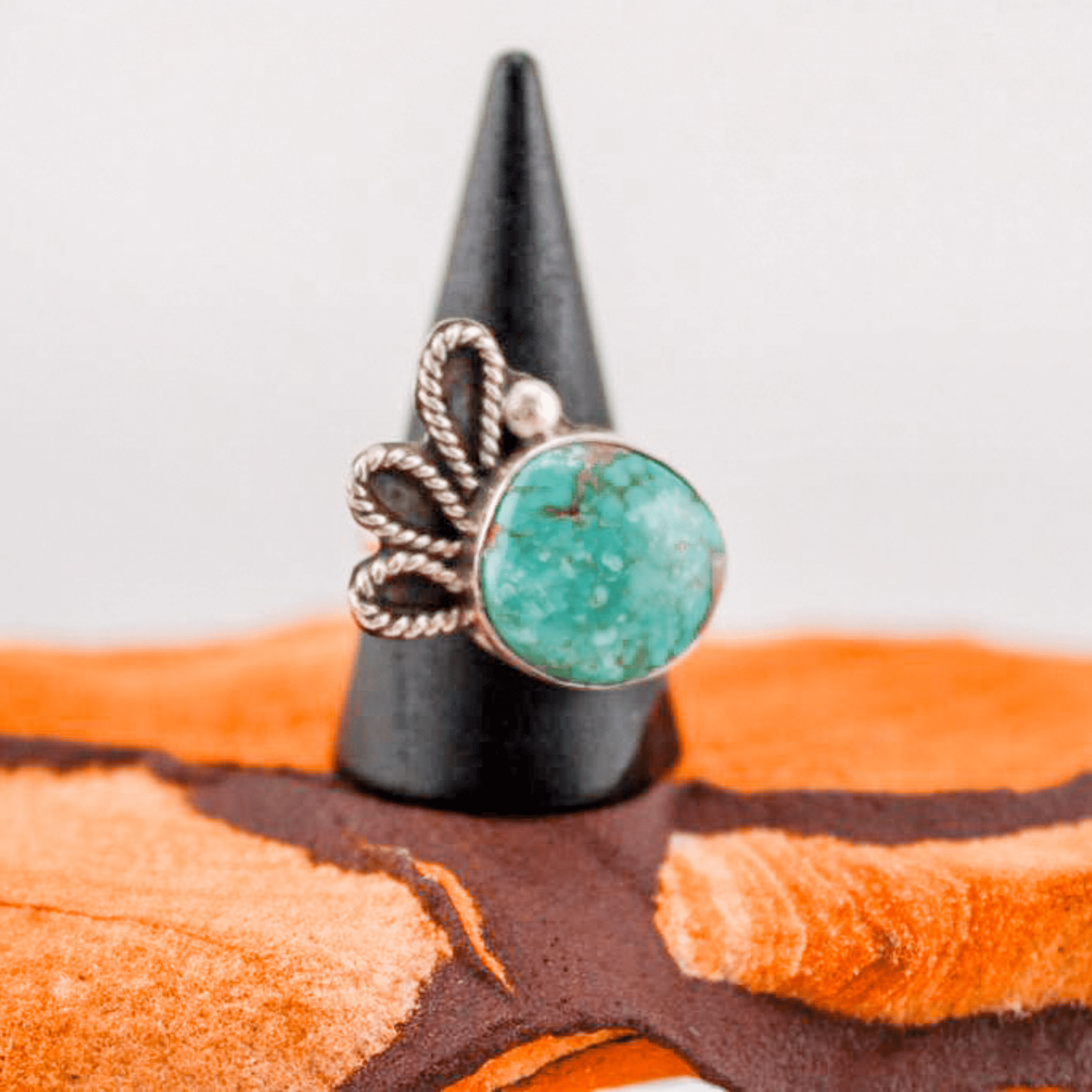 The Bloom Ember Turquoise Ring features a striking round stone set within a delicate bloom design, showcasing expert craftsmanship. Available in two rare variants—Black Jack and Sonoran stone—this ring uniquely combines natural beauty with refined detail, making it an exceptional choice for those who appreciate distinctive, high-quality jewelry. Perfect for adding a sophisticated touch to any collection.