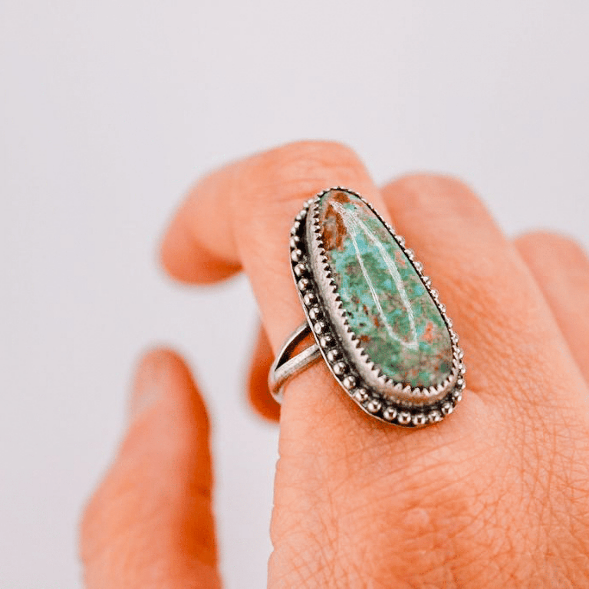 The Clay Hill – Royston Turquoise Ring features an authentic Royston turquoise stone, prized for its rich blue-green color and distinctive matrix. Crafted with precision, this ring offers both durability and elegance, making it an exceptional piece for collectors and enthusiasts of fine gemstone jewelry. Its refined design highlights the natural beauty of the stone, providing a timeless accessory that enhances any collection.