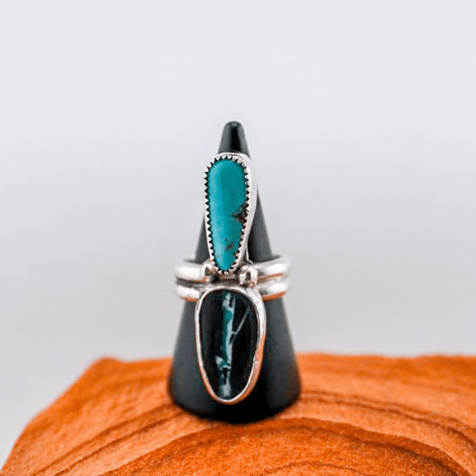 The Pass – Turquoise & Black Jack Ring pairs vivid turquoise with deep black jack stones, expertly set to highlight their natural beauty and contrast. This sophisticated design offers a refined statement piece that complements a range of styles, combining bold color with elegant craftsmanship for lasting appeal.